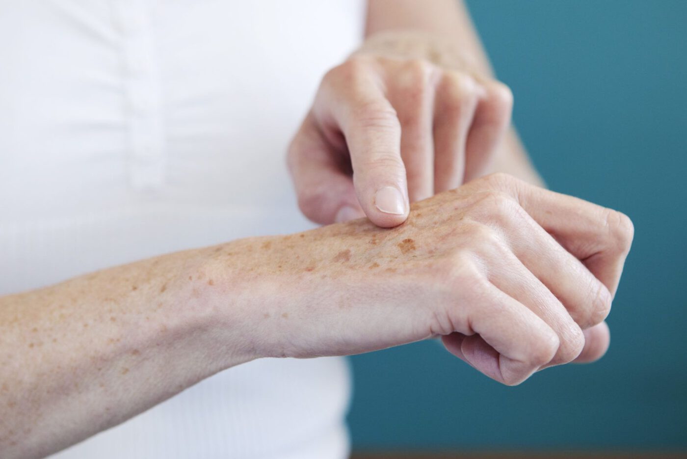 As melanoses são mais frequentes em pessoas de pele clara e surgem em locais do corpo que estão constantemente expostos, como mãos, braços, rosto, pescoço e colo.